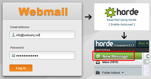 طریق ورود به محیط horde برای دریافت و ارسال ایمیل ها: