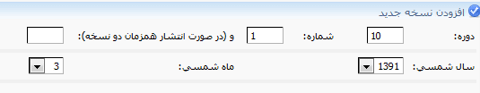 | مدیریت نشریه | مدیریت نسخههاى نشریه | تعریف نسخه جدید برای نشریه برای انتشار مقالات |