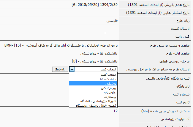 در هر مرحله نماینده هر سازمان می توان کلیه مراحل داوری (ارسال برای داور با فرم مورد نظر و دریافت نظرات داور) را انجام دهد. سپس بعد از اتمام کار خود طرح را برای مقصد بعدی ارسال می کند.