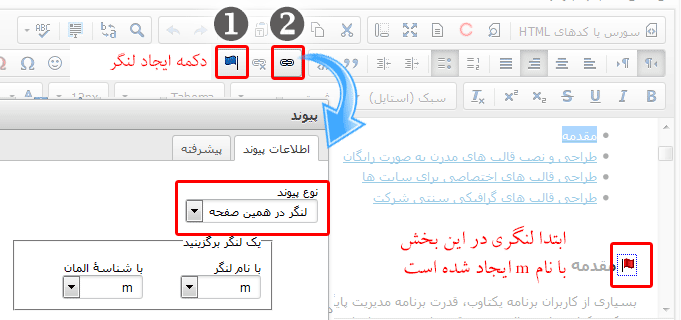 1- درج لنگر برای ایجاد لینک درون صفحه ای: