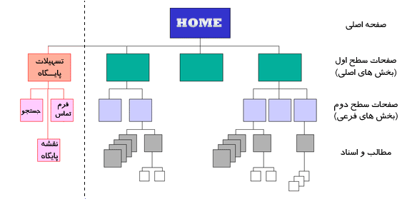 سایت شما مانند یک کتاب است که فصل ها و بخش هایی دارد. در برنامه یکتاوب صفحات سطح اول و سطح دوم برای دسته بندی مطالب استفاده می شوند. به تصویر زیر دقت کنید.